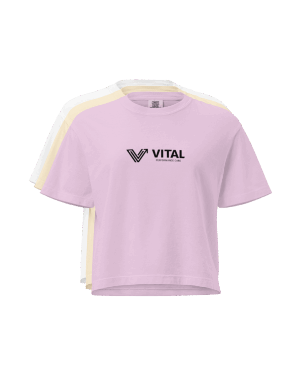 • Boxy fit with mid-length, seamless body